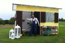 den man auf dem Golfplatz als Kabarett-Bühne umfunktionieren kann.